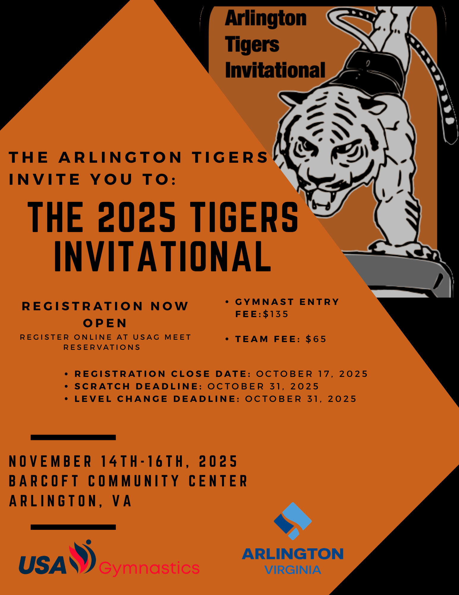 | November 14-16, 2025 | Arlington Tigers Invitational | Arlington, VA | Meet Flyer |